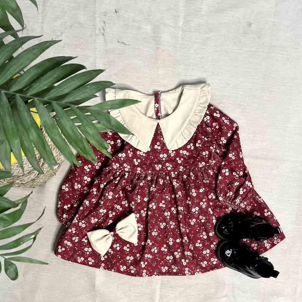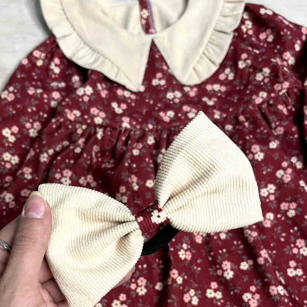 پیراهن دخترانه مخمل کبریتی و پاپیون